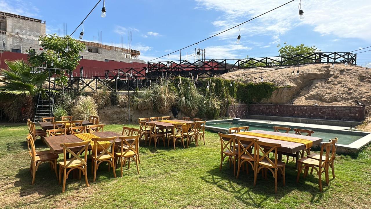 Servicios: Baños, Asador, Cocina, Estacionamiento, Refrigerador. Mobiliario y Camino de Mesa.