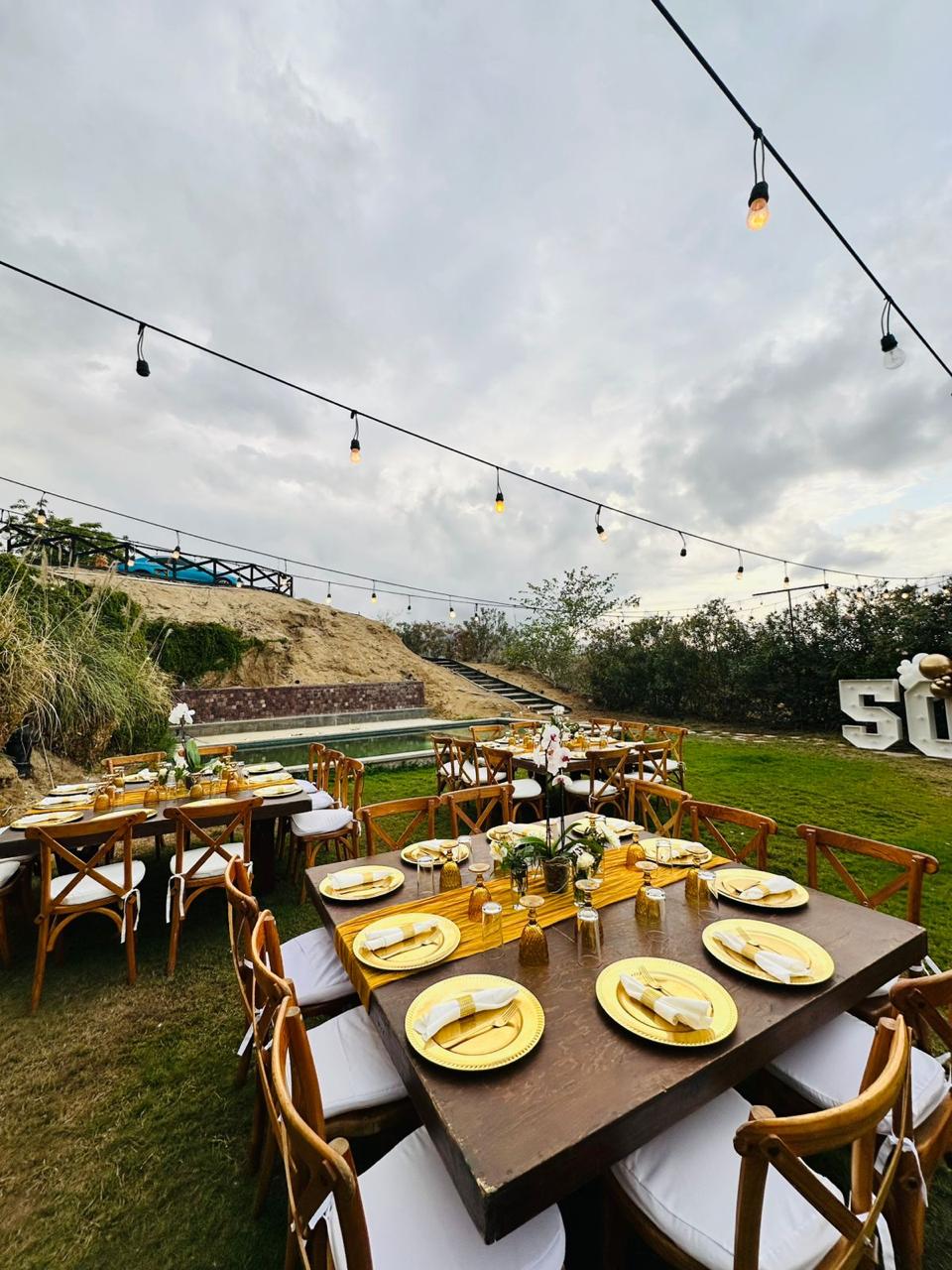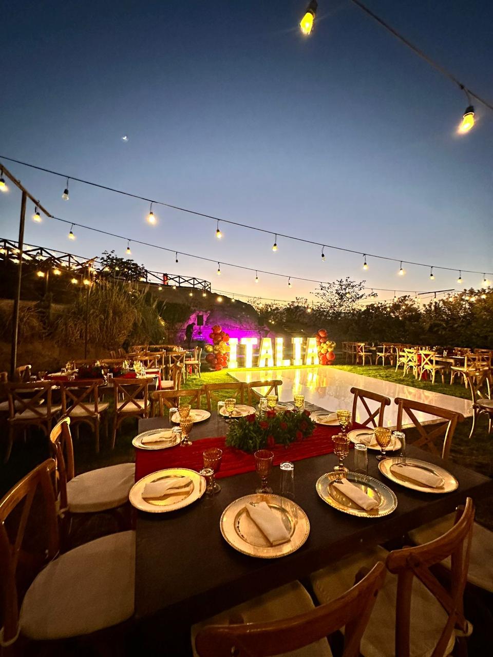 Servicios: Baños, Asador, Cocina, Estacionamiento, Refrigerador. Mobiliario y Camino de Mesa.